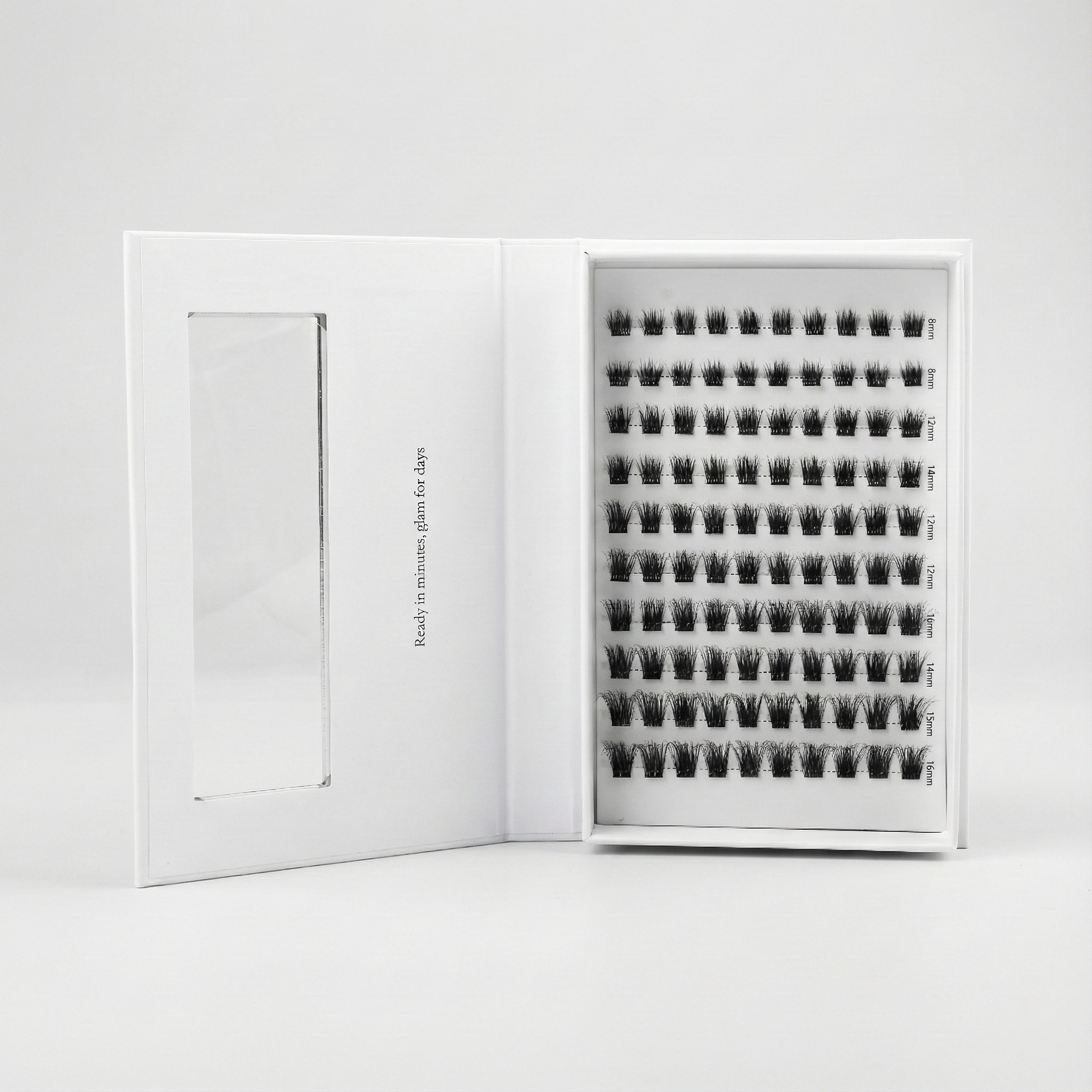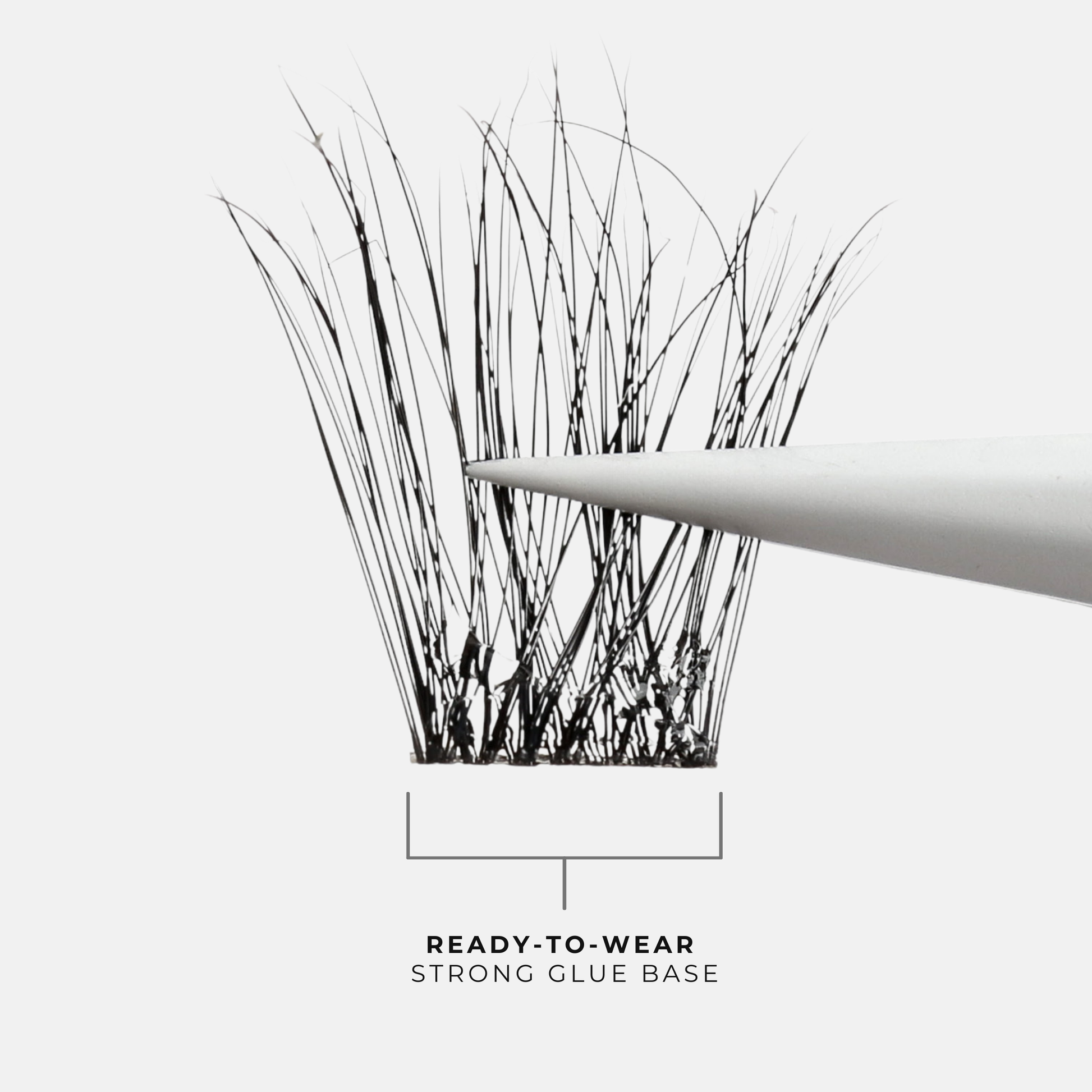 Natural, wispy, effortless. Pre glued lash clusters that apply in seconds and stay put for 7-10 days. No experience needed.